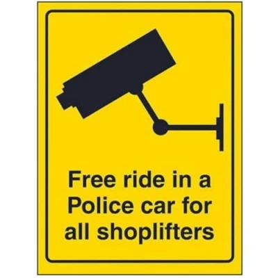 V Safety Free Ride In A Police Car For Shoplifters Sign 150mm x 200mm Self Adhesive Vinyl