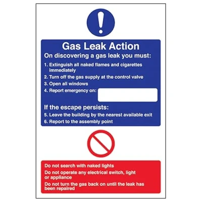 V Safety Gas Leak Action Portrait 200 x 300mm 3mm Aluminium Composite Sign
