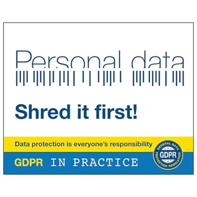 V Safety GDPR Sticker Is That Personal Data? Shred It First 100 x 80 mm Self Adhesive Vinyl Sign