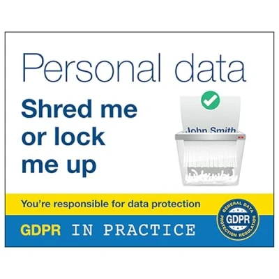 V Safety GDPR Sticker Personal Data Shred Me Or Lock Up 100 x 80 mm Self Adhesive Vinyl Sign