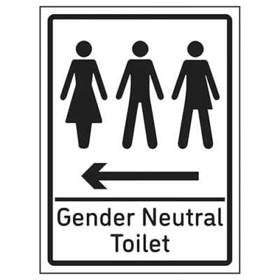 V Safety Gender Neutral Toilet Arrow Left 150 x 200 mm Glow In The Dark 1mm Rigid Plastic Sign