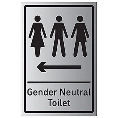 V Safety Gender Neutral Toilet Arrow Left 200mm x 300mm 1.6mm Aluminium Effect Rigid Plastic