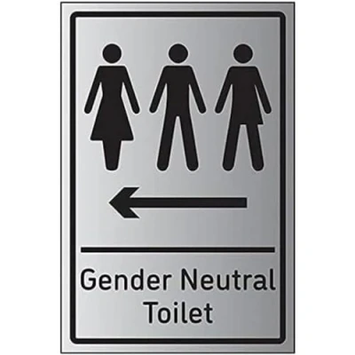 V Safety Gender Neutral Toilet Arrow Left 200mm x 300mm Self Adhesive Aluminium Effect