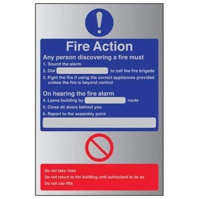 V Safety General Fire Action Dial Sign 300mm x 400mm Self Adhesive Alu Effect