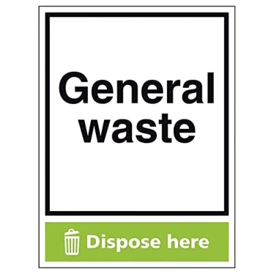 Signs should be clearly displayed around bins and other waste recepticles Enables employees and visitors to take adequate measures to recycle waste and do their bit for the environment Specifically designed signs ensure the information is relevant to the setting Easy to apply – rigid plastic and self adhesive vinyl sign types come with their own adhesive 3mm aluminium composite supplied as a sign only option for wall mounting or a sign with channel rail for posts (not supplied)