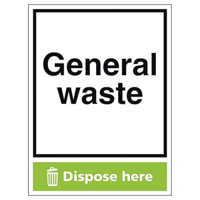 V Safety General Waste Dispose Here Portrait 300 x 400 mm 2mm Super Tough Rigid Plastic Sign