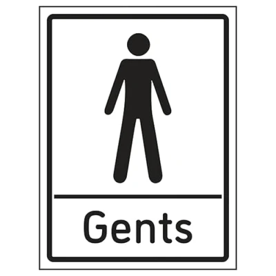 V Safety Gents Toilets 150 x 200 mm 2mm Super Tough Rigid Plastic Sign
