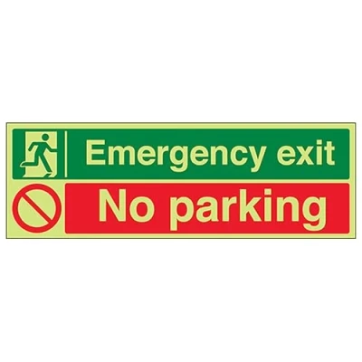 V Safety GITD Emergency Exit/No Parking 300 x 100 mm Glow In The Dark Self Adhesive Vinyl Sign