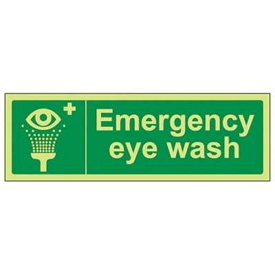V Safety GITD Emergency Eye Wash Landscape 300 x 100 mm Glow In The Dark Self Adhesive Vinyl Sign