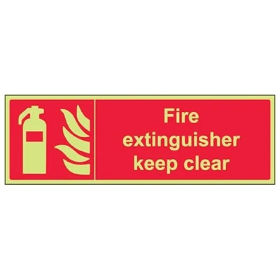 V Safety GITD Fire Extinguisher Keep Clear Landscape 300 x 100 mm Glow In The Dark Self Adhesive Vinyl Sign