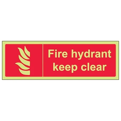 V Safety GITD Fire Hydrant Keep Clear Landscape 300 x 100 mm Glow In The Dark Self Adhesive Vinyl Sign