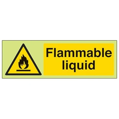 V Safety GITD Flammable Liquid Landscape 300 x 100 mm Glow In The Dark Self Adhesive Vinyl Sign