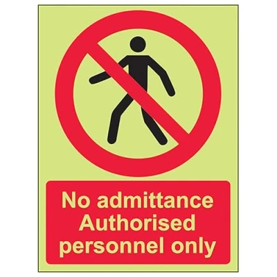 V Safety GITD No Admittance Authorised Personnel 150 x 200 mm Glow In The Dark Self Adhesive Vinyl Sign