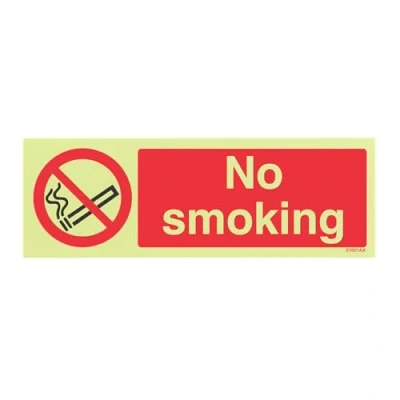 Legally required No Smoking sign, ensuring compliance with the UK Smoking Ban and workplace safety. Clearly marks smoke-free areas, protecting staff and visitors from second-hand smoke and fire risks. Complies with EN ISO 7010:2020, ensuring clear and universally recognised no smoking symbols. Expertly crafted with specialist tools, delivering clear, long-lasting signage for workplace safety. High-performance glow-in-the-dark material, exceeding Class B PSBA rating. Ensure good visibility in low-light conditions.