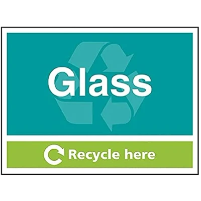 V Safety Glass Recycle Here 600x450mm Self Adhesive Vinyl Sign