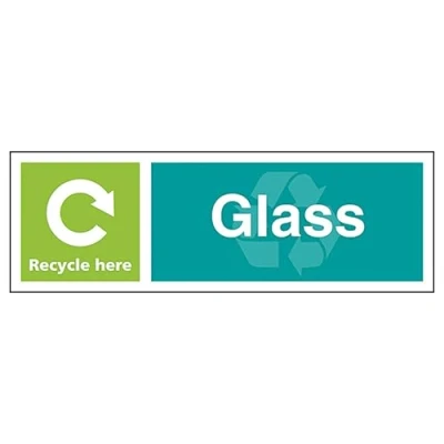 V Safety Glass Recycle Here Landscape 300 x 100 mm 2mm Super Tough Rigid Plastic Sign