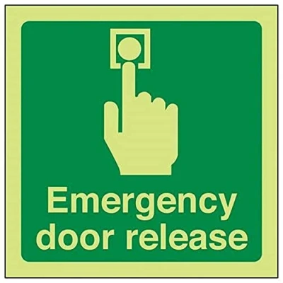 Helps to fulfil legal obligations to inform of the direction in which safety can be reached as per Health and Safety (Safety Signs & Signals) Regulations 1996 Conforms to EN ISO 7010:2012 by featuring a green background with a white pictogram or text positioned centrally Square Orientation. Sign reads "Emergency Door Release" Highly durable Glow In The Dark Self Adhesive Vinyl and screen printed message will stand the test of time Sign measures 150 x 150mm. Self Adhesive material will adhere securely to most surfaces
