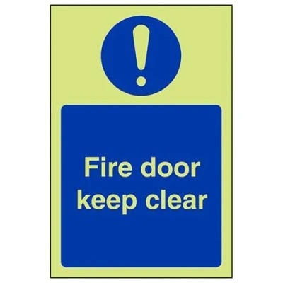 Helps to fulfil obligations to show vital escape route information about fire doors for all employees and visitors as per Health and Safety (Safety Signs & Signals) Regulations 1996 Conforms to EN ISO 7010:2012 Portrait Orientation. Sign reads "Fire Door Keep Clear" Highly durable Glow In The Dark Self Adhesive Vinyl and screen printed message will stand the test of time Sign measures 150 x 200mm. Self Adhesive material will adhere securely to most surfaces