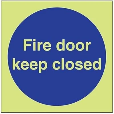 V Safety Glow In The Dark Fire Door Keep Closed Sign 200mm x Self Adhesive Vinyl