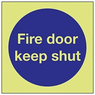 Helps to fulfil obligations to show vital escape route information about fire doors for all employees and visitors as per Health and Safety (Safety Signs & Signals) Regulations 1996 Conforms to EN ISO 7010:2012 Square Orientation. Sign reads "Fire Door Keep Shut" Highly durable Glow In The Dark Self Adhesive Vinyl and screen printed message will stand the test of time Sign measures 100 x 100mm. Self Adhesive material will adhere securely to most surfaces