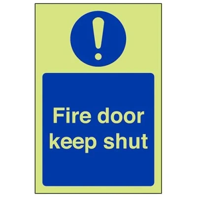 Helps to fulfil obligations to show vital escape route information about fire doors for all employees and visitors as per Health and Safety (Safety Signs & Signals) Regulations 1996 Conforms to EN ISO 7010:2012 Portrait Orientation. Sign reads "Fire Door Keep Shut" Highly durable Glow In The Dark Self Adhesive Vinyl and screen printed message will stand the test of time Sign measures 150 x 200mm. Self Adhesive material will adhere securely to most surfaces