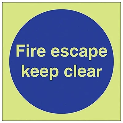 Helps to fulfil obligations to show vital escape route information about fire doors for all employees and visitors as per Health and Safety (Safety Signs & Signals) Regulations 1996 Conforms to EN ISO 7010:2012 Square Orientation. Sign reads "Fire Escape Keep Clear" Highly durable Glow In The Dark Self Adhesive Vinyl and screen printed message will stand the test of time Sign measures 150 x 150mm. Self Adhesive material will adhere securely to most surfaces