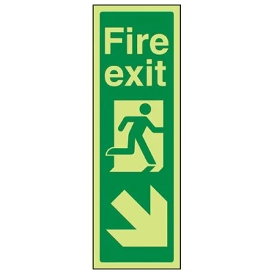 V Safety Glow In The Dark Fire Exit Arrow Down Right Sign 200mm x 600mm Self Adhesive Vinyl