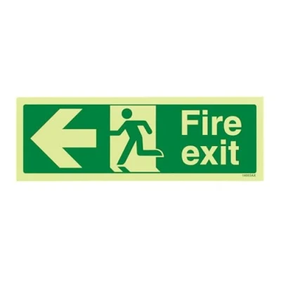 V Safety Glow in the Dark Fire Exit Arrow Left Sign 300 mm x 100 Self Adhesive Vinyl