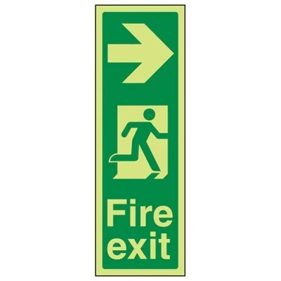V Safety Glow In The Dark Fire Exit Arrow Right Sign 200mm x 600mm Self Adhesive Vinyl
