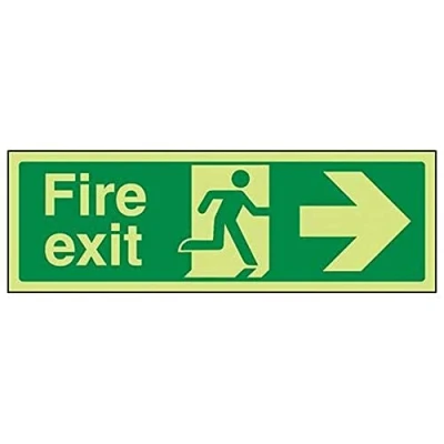 V Safety Glow In The Dark Fire Exit Arrow Right Sign 600mm x 200mm Self Adhesive Vinyl