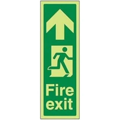 V Safety Glow In The Dark Fire Exit Arrow Up Sign 200mm x 600mm Self Adhesive Vinyl