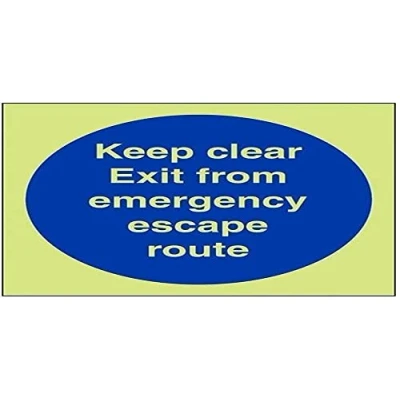 Helps to fulfil obligations to show vital escape route information about fire doors for all employees and visitors as per Health and Safety (Safety Signs & Signals) Regulations 1996 Conforms to EN ISO 7010:2012 Square Orientation. Sign reads "Keep Clear. Exit From Emergency Escape Route" Highly durable Glow In The Dark Self Adhesive Vinyl and screen printed message will stand the test of time Sign measures 200 x 200mm. Self Adhesive material will adhere securely to most surfaces