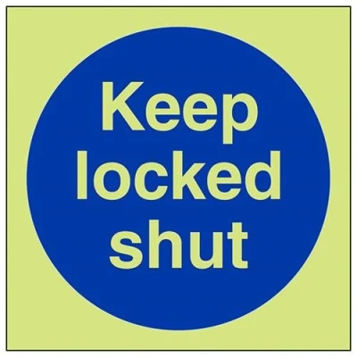 Helps to fulfil obligations to show vital escape route information about fire doors for all employees and visitors as per Health and Safety (Safety Signs & Signals) Regulations 1996 Conforms to EN ISO 7010:2012 Square Orientation. Sign reads "Keep Locked Shut" Highly durable Glow In The Dark Self Adhesive Vinyl and screen printed message will stand the test of time Sign measures 200 x 200mm. Self Adhesive material will adhere securely to most surfaces