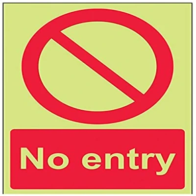 V Safety Glow In The Dark No Entry Prohibition Sign 150mm x 200mm Rigid Plastic