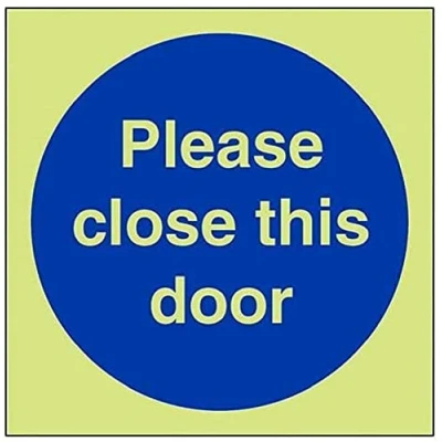 Helps to fulfil obligations to show vital escape route information about fire doors for all employees and visitors as per Health and Safety (Safety Signs & Signals) Regulations 1996 Conforms to EN ISO 7010:2012 Square Orientation. Sign reads "Please Close This Door" Highly durable Glow In The Dark Self Adhesive Vinyl and screen printed message will stand the test of time Sign measures 200 x 200mm. Self Adhesive material will adhere securely to most surfaces