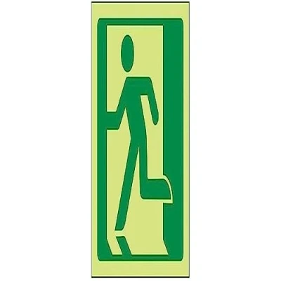Helps to fulfil obligations to identify escape routes in a fire emergency for all members of staff and visitors as per Health and Safety (Safety Signs & Signals) Regulations 1996 Conforms to EN ISO 7010:2012 by featuring a green background with a white pictogram or text positioned centrally Square Orientation. Sign features ISO compliant Running Man Left Logo Highly durable Glow In The Dark Self Adhesive Vinyl and screen printed message will stand the test of time Sign measures 100 x 100mm. Self Adhesive material will adhere securely to most surfaces