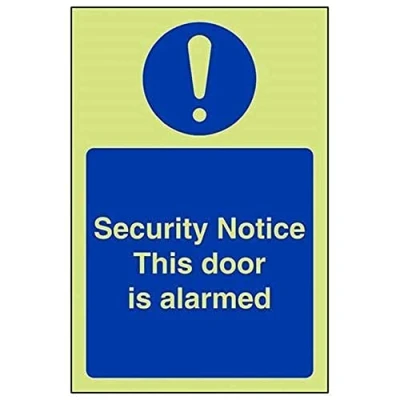 Helps to fulfil obligations to show vital escape route information about fire doors for all employees and visitors as per Health and Safety (Safety Signs & Signals) Regulations 1996 Conforms to EN ISO 7010:2012 Portrait Orientation. Sign reads "Security Notice. This Door Is Alarmed" Highly durable Glow In The Dark Self Adhesive Vinyl and screen printed message will stand the test of time Sign measures 150 x 200mm. Self Adhesive material will adhere securely to most surfaces