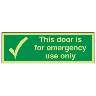V Safety Glow In The Dark This Door Is For Emergency Use Only Sign 600mm x 200mm Self Adhesive Vinyl