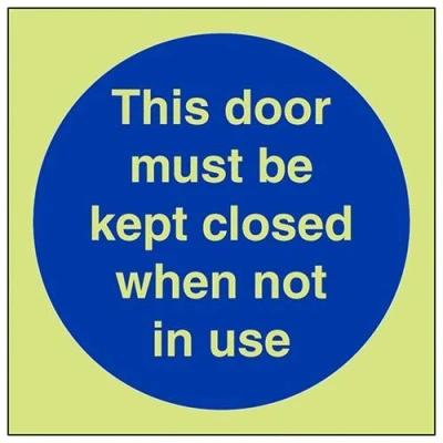 V Safety Glow In The Dark This Door To Be Kept Closed When Not Use Sign 100mm x Self Adhesive Vinyl