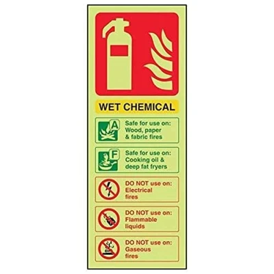 Helps fulfil obligations to convey essential information relating to fire fighting equipment as per Health and Safety (Safety Signs & Signals) Regulations 1996 Conforms to EN ISO 7010:2012 Portrait Orientation. Sign reads "Safe For Use On Wood, Paper & Fabric Fires. Safe For Use On Cooking Oil & Deep Fat Fryers. DO NOT Use On Electrical Fires / Flammable Liquids / Gaseous Fires" Highly durable Glow In The Dark Self Adhesive Vinyl and screen printed message will stand the test of time Sign measures 100 x 280mm. Self Adhesive material will adhere securely to most surfaces