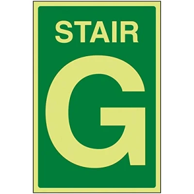 V Safety Green Stair G Sign 200x300mm Photoluminescent Self Adhesive