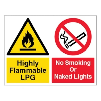 V Safety Highly Flammable LPG/No Smoking Or Naked Lights Landscape 600 x 450 mm 3mm Aluminium Composite Sign