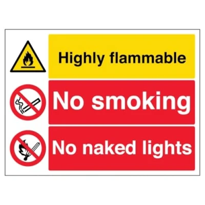 V Safety Highly Flammable/No Smoking/Naked Lights 600 x 450 mm 3mm Aluminium Composite Sign