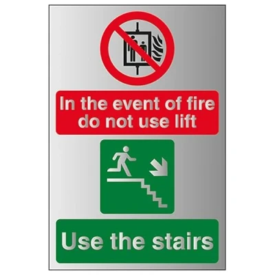 V Safety In The Event Of Fire Do Not Use Lift/Use Stairs Right 150 x 200 mm Self Adhesive Vinyl Aluminium Effect Sign