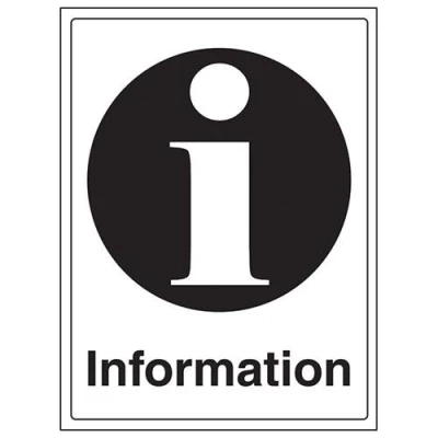 Portrait Orientation. Sign reads "Information" Highly durable 1mm plastic material and screen printed message will stand the test of time Sign measures 300 x 400mm 0 0