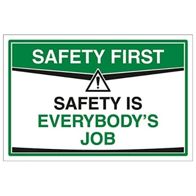Demonstrate your company’s commitment to safety Send the right message quickly and efficiently Increase safety consciousness among employees Focus on positive behaviours and motivate employees Simple messaging that helps prevent accidents Easy to apply - both sign types come with their own adhesive. Choose from high quality self adhesive vinyl or 1mm rigid plastic materials