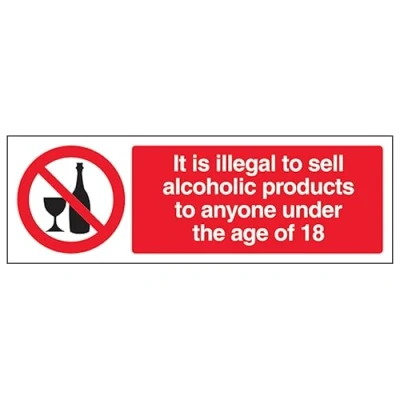 V Safety It Is Illegal To Sell Alcohol Anyone Under 18 Landscape 300 x 100 mm 2mm Rigid Plastic Sign