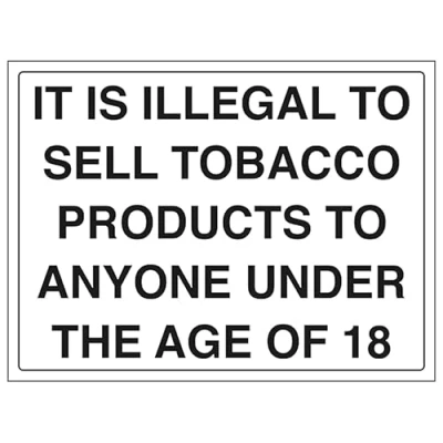 V Safety It Is Illegal To Sell Tobacco Products Anyone Under 18 200 x 150 mm 2mm Rigid Plastic Sign