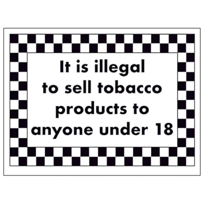 V Safety It Is Illegal To Sell Tobacco Products Anyone Under 18 200 x 150 mm Self Adhesive Vinyl Aluminium Effect Sign