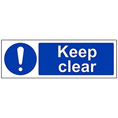 Helps to fulfil legal obligations to advise employees and visitors of specific actions and behaviour which must be adhered to in order to ensure personal safety as per Health and Safety (Safety Signs & Signals) Regulations 1996 Conforms to EN ISO 7010:2012 - Mandatory Signs feature a round symbol with a blue background of at least 50% of the total sign area, with a white pictogram and text Landscape Orientation. Sign reads "Keep Clear" Highly durable Self Adhesive Vinyl material and screen printed message will stand the test of time Sign measures 300 x 100mm. Self Adhesive material will adhere securely to most surfaces